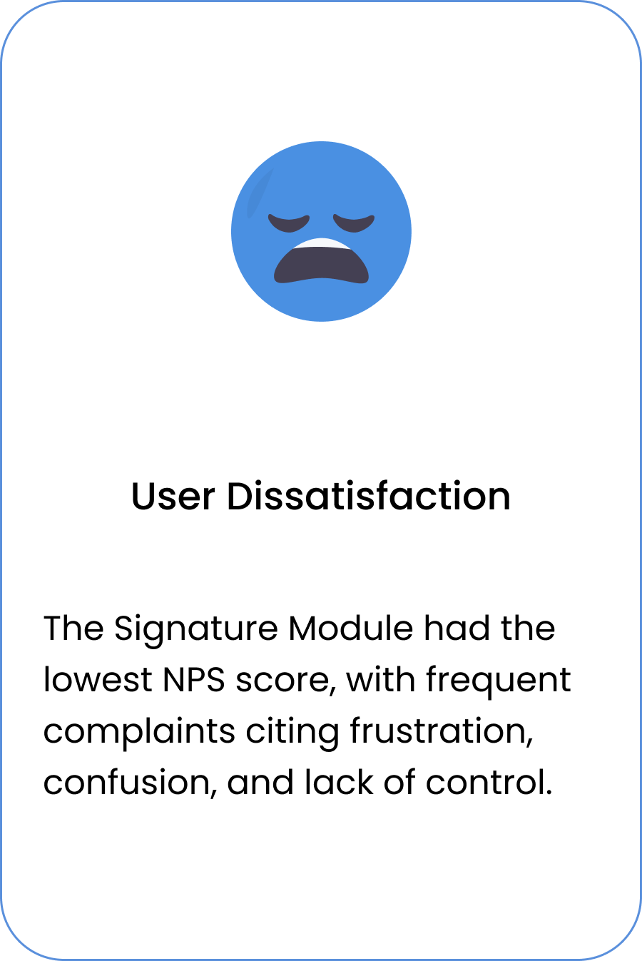 While time spent in a feature can often indicate engagement, our Heap and NPS data told a different story. Signatures was the most-used module (46% of time spent across the platform), but also the most frequently criticized.