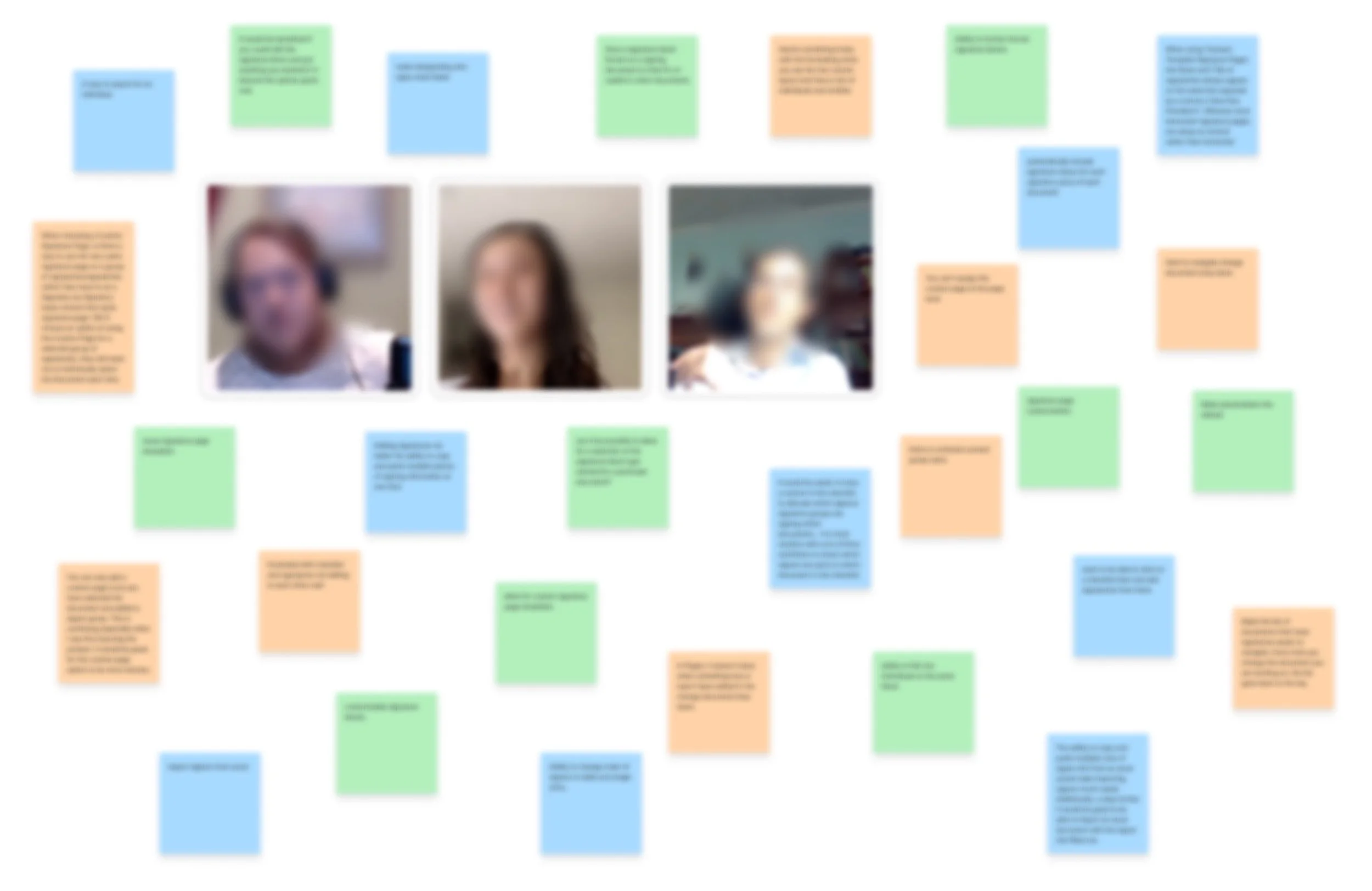 I recruited 7 participants with help from our Knowledge Experts to conduct current solution walkthroughs. These sessions included both users who had the Signature Module enabled and those who didn’t.